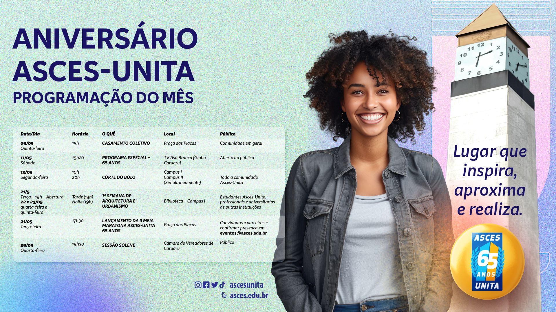 Na campanha institucional 2024, nossa agência teve o privilégio de assinar a comunicação dos 65 anos da Asces-Unita, celebrando sua trajetória como referência em educação, saúde e desenvolvimento regional. A campanha resgatou a memória da instituição, valorizou suas conquistas e reforçou o compromisso com o futuro, aproximando ainda mais a marca de seus estudantes, egressos e da comunidade que cresce junto com a Asces-Unita há mais de seis décadas.