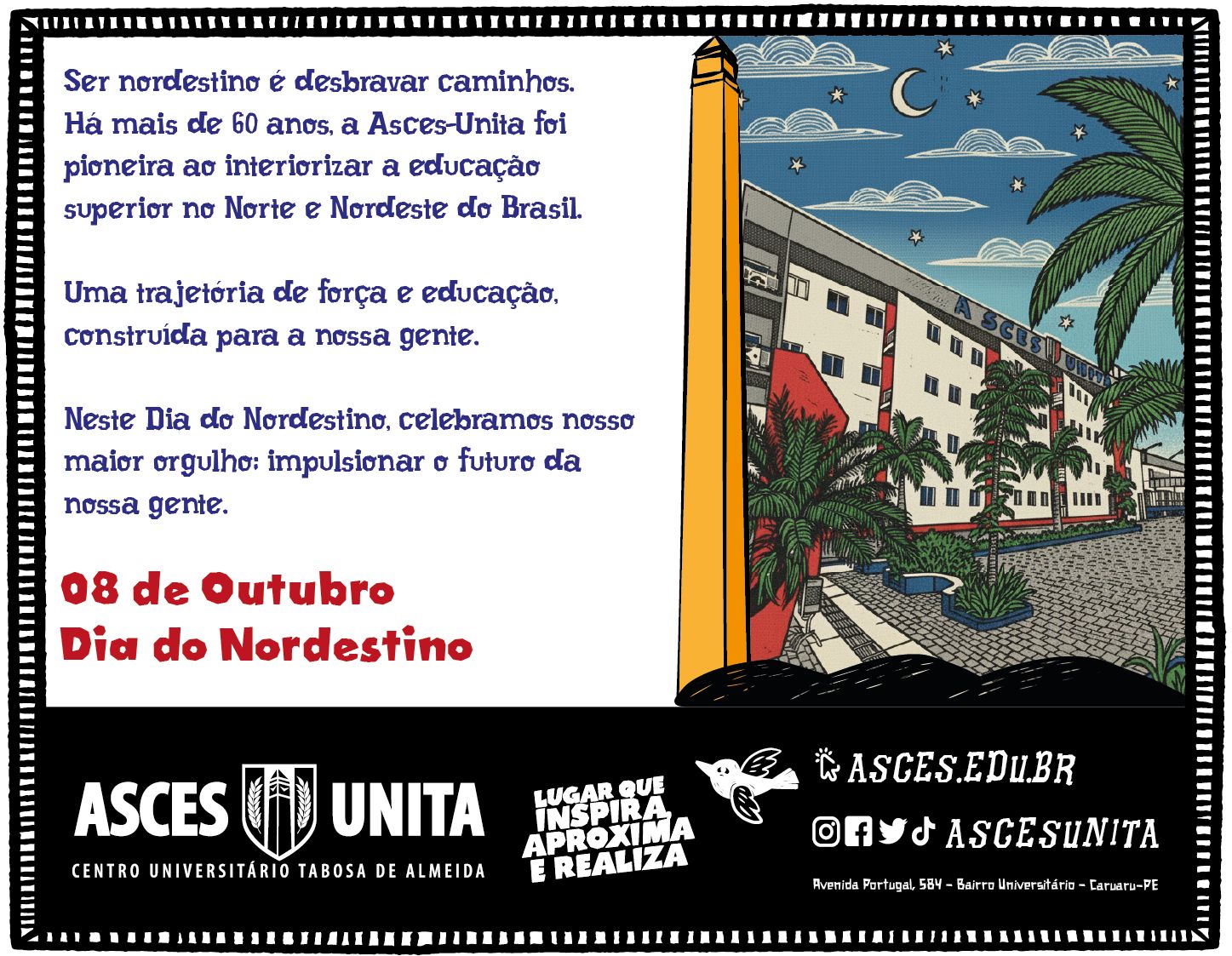 O resultado é uma campanha que reforça a Asces-Unita como uma instituição que inspira confiança, aproxima pessoas e realiza projetos de vida, tendo a Torre do Tempo como símbolo vivo dessa jornada. Um passo à frente na construção de uma marca educacional que não apenas fala sobre o futuro – mas o projeta e o compartilha, todos os dias.